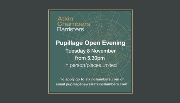 Atkin Chambers is hosting its annual virtual pupillage open evening on Tuesday 1 November at…